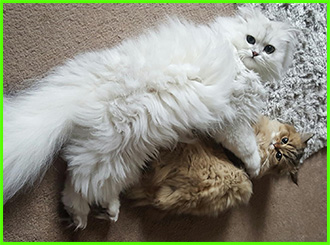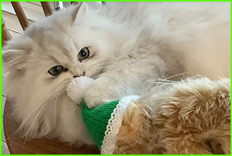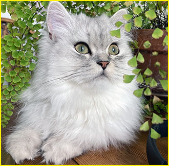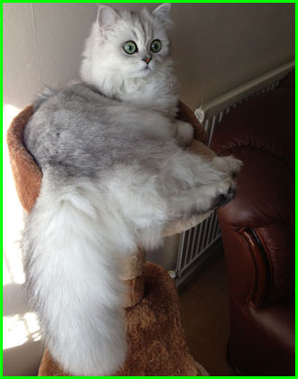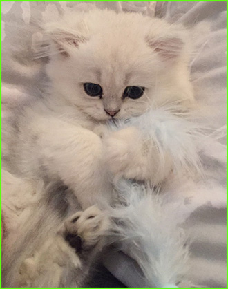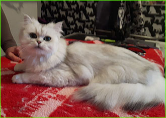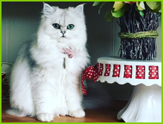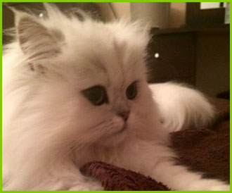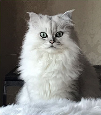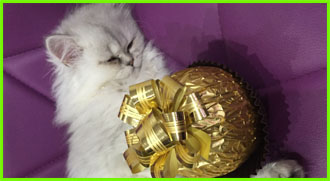 "We are so glad we found out about www.chinchillapersians.co.uk and reserved our gorgeous little boy. Everything about him is perfect, such a lovely temperament, coat and oh so affectionate. You can really tell that Helga loves her cats very much and this is evident from the kittens and the condition they are in. I would recommend one of Helga's kittens to anyone who is after the most beautiful friend for life. I just wish I had room for another one of those delightul kittens!"