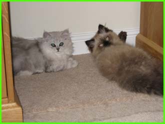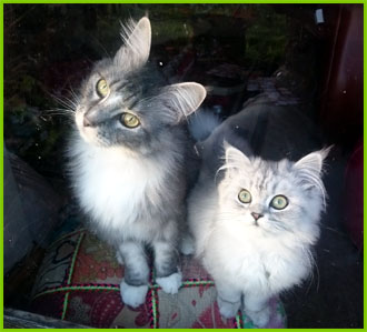 | Ann's Jasmine and Spike: "Jasmine and Spike have settled in very well. They are lively, friendly and inquisitive cats. They love playing and are great company for us and each other."