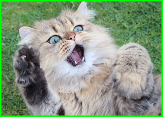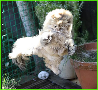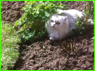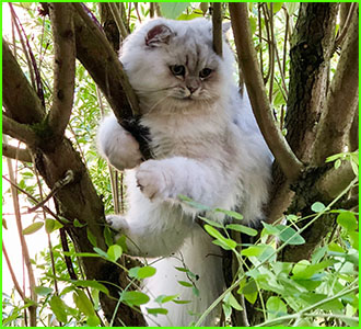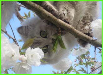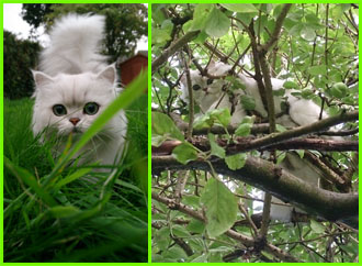 | '....Happy Easter. I thought you might like to see this photo of Archie (Mr Tinkles as you called him) having fun in our garden aged 5 months. He is a wonderful cat, really affectionate and lots of fun. He is also very fit and healthy and loves climbing the big yew tree in our front garden...