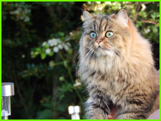 '....I thought it time I sent you some new photos of Miska now that she is a year old - I can't believe how quickly that time has gone by. She is a real beauty both to look at and in nature and has become very fond of being cuddled, which of course I don't mind at all! She still sleeps by my pillow at night and I love playing with her and watching her play. She loves water and has learnt how to turn the kitchen tap on so I have to tie it up now so that I don't get a flood... she really is very intelligent and clever.
