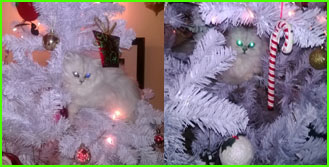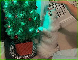 I also have to rebuild my Christmas tree each day he has lots of toys but much prefers a Christmas bauble got by himself from the tree! Lol"