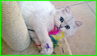 She had a pee and has used the litter tray ever since, without an accident and without ANY problems at all. This is very impressive. ...She settled in amazingly quickly. She isn t frightened of sudden noises ( the hoover, the spin dryer, the kettle, the postman knocking at the door) She loves what I call the Cat Adventure Playground, the very Large Cat Scratching Post and the small one I got for her while she was still little. She uses them all! ... You were right to say she is brave. She is FEARLESS! Andrew said, She is VERY agile! We definitely did not need that stair gate!