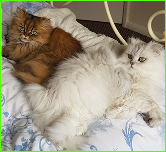 | Linda & Paul's Casper and Kiki 2019: "They are both big and Kiki weighs a ton, I call her my little tubster . She loves her food and is always first to the plate! They are delightful and both so loving and everyone adores them ??. They have supervised outings in the garden ... Thank you for bringing such beautiful cats into our lives, we love them to bits."