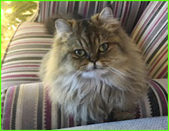 Hazel's Maisie - 2022 '...Maisie is still a little Sweetheart! When we come home she rushes to the door to meet us !as if we have been gone for hours! , then runs around the house as she is happy we are home. Never stops playing with Philip and Charlie! I think they must get fed up with her at times!but they never show it!and love her as much as we do....' (Philip and Charlie are their other persians)