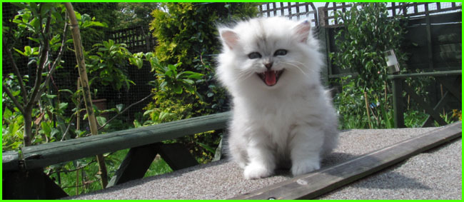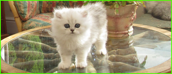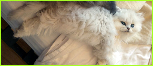 | Priscilla / Tutu - a nice example of the old type chinchilla cat. Her name is Priscilla after her grandmother, but we just call her Tutu. Long coat, beautiful lined green eyes, delicate body shape what chinchillas were before 'fashion' dictated crossing them with persians for shorter nose and more robust body, which - in many cases - ruined their original beautiful clear colours.